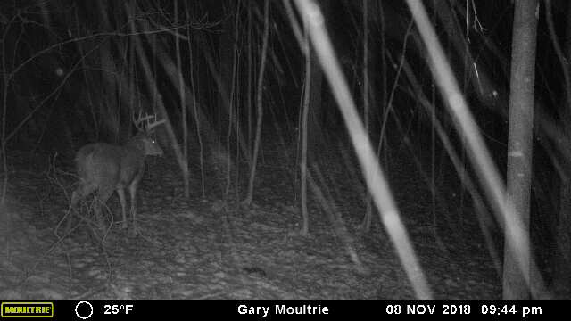 Typically these trips involve a check of the stand to make sure bears haven’t finally taken it down for good. Once I’m certain that the old stand is still hearty enough to support me I check the trail cams. I’ve had many over the years. I’ve had a few fail me. I have three now, and the brand I’ve settled on is Moultrie. To be fair to all other brands, I haven’t tried them all. I won’t name the few that failed me. I’ll just say, of the brands I’ve tried, Moultrie has the best combination of speed, photo quality, and value for the money. The key element is photo speed. If a deer is running, or even trotting, tenths of a second can make the difference between a good deer pic and a pic of a deer’s ass. Or, nothing at all.