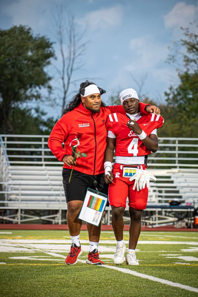 I have so many stories about the great things I’ve seen Niko do – both in school and with the football team – that I don’t know what to tell first. I’ll start here: My Uncle Bill is an East Grad. As proud of Green Bay East as any alum has been of any high school ever. Bill has had some struggles in his life. He is also the kindest, most generous person I’ve ever met. He was thrilled to meet Coach Niko and Coach Witt during the summer of 2024. Niko could’ve just shook Bill’s hand and said hello that night and that would’ve been more than enough. Instead he sat with Bill for at least 30 minutes and talked about East. Made Bill feel like the most important person in the room. Then Coach Niko asked Bill to lead the players onto the field before the Green Bay West game that season. Bill was over the moon. Unfortunately, Bill wasn’t physically able to run onto the field and rip off his shirt Hulk Hogan-style like we envisioned, but he was still able to stand near the track and high five the players as they took the field. Niko presented him with an East High School Football jacket. What a beautiful night that was, all because of Niko’s kindness.